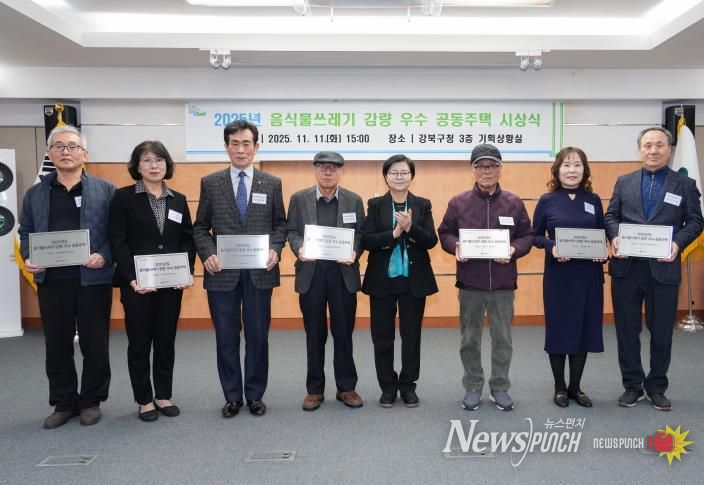뉴스펀치 김완규 기자 | 서울 강북구는 11월 11일 구청 기획상황실에서 ‘2025년 공동주택 음식물쓰레기 감량 우수 공동주택 시상식’을 개최했다.