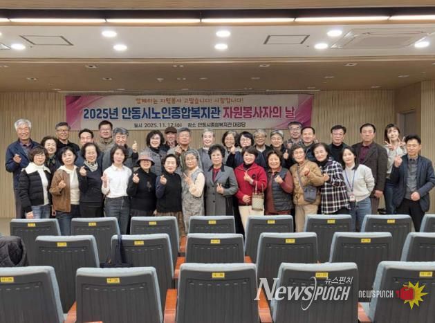 뉴스펀치 김길룡 기자 | 다양한 프로그램과 자율이용시설, 그리고 구내식당을 연중 운영하며 지역 어르신들에게 맞춤형 복지를 제공하고 있는 안동시노인종합복지관은 11월 12일, 복지관 4층 대강당에서 2025년 자원봉사자의 날 행사를 개최했다.