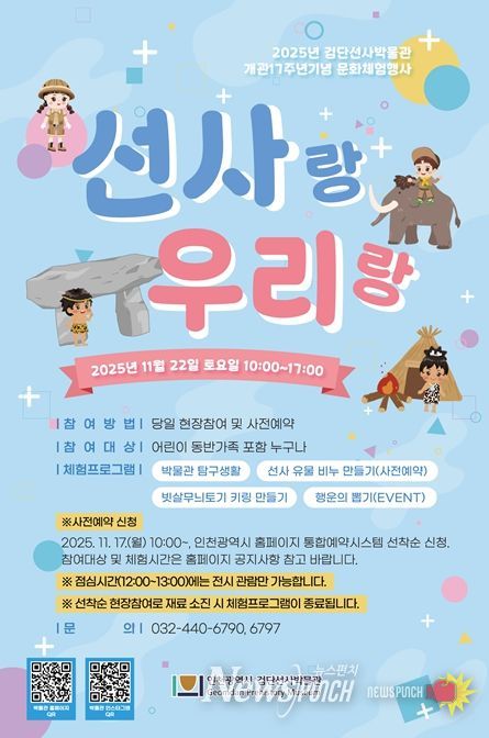 뉴스펀치 김길룡 기자 | 인천광역시 검단선사박물관은 오는 22일 개관 17주년을 맞아 문화체험행사 '선사랑 우리랑'을 개최한다고 밝혔다.