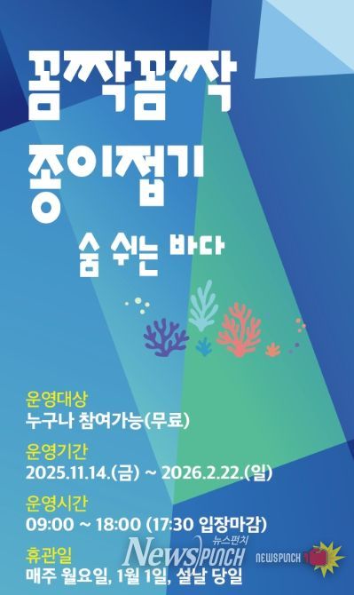 뉴스펀치 김길룡 기자 | 제주특별자치도 제주현대미술관은 14일부터 내년 2월 22일까지 관람객을 대상으로 ‘꼼짝꼼짝 종이접기’ 프로그램을 운영한다고 밝혔다.
