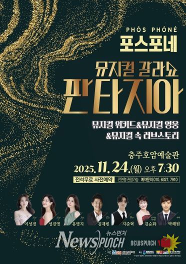 뉴스펀치 김길룡 기자 | 충주시를 기반으로 활동하는 문화예술단체 포스포네(Phosphone)가 오는 11월 24일 오후 7시 30분, 호암예술관에서 〈포스포네 뮤지컬 갈라쇼 판타지아콘서트〉를 선보인다. 이번 공연은 충북문화재단의 2025년도 예술창작활동지원사업 선정작으로, 충주 시민들에게 뮤지컬 음악의 매력을 널리 알리고자 기획됐다.