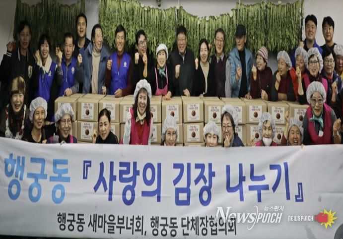 뉴스펀치 김길룡 기자 | 수원시 팔달구 행궁동 지난 13일 ‘어려운 이웃 김장 담가주기’ 행사를 열고, 직접 담근 김장김치를 홀몸어르신과 사회취약계층 190가구에 전달했다.