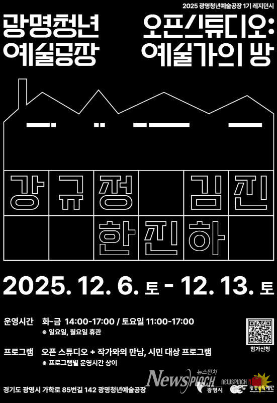 뉴스펀치 김길룡 기자 | 광명문화재단은 오는 12월 6일부터 13일까지 청년 예술인 레지던시 공간인 광명청년예술공장에서 입주 작가 오픈스튜디오 '예술가의 방'을 개최한다.
