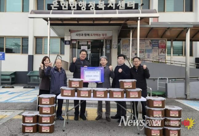 뉴스펀치 김길룡 기자 | 양주시 은현면이 13일 주식회사 플랜비(대표 김진성)로부터 김장 김치(10kg) 20박스를 기탁받았다.