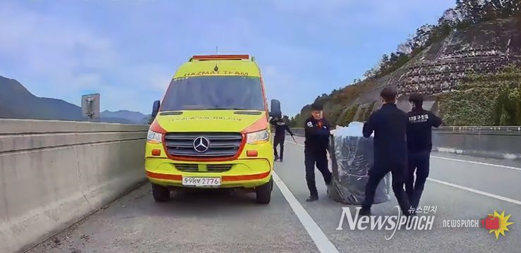 앞서가던 트럭에서 자재가 도로 위로 떨어지며 뒤따르던 차량과의 충돌 위험이 생기자, 대원들은 즉시 갓길에 정차한 뒤 도로 위 적재물을 수거해 트럭에 다시 실었다.