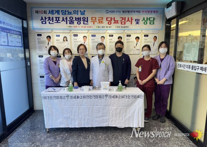 뉴스펀치 김길룡 기자 | 의료법인승연의료재단 삼천포서울병원(병원장 한창섭)은 2025년 11월 14일(금) 제10회 세계 당뇨의 날(World Diabetes Day) 을 맞아 지역주민을 대상으로 무료 혈당 검사 및 당뇨병 관련 건강 상담 행사를 병원 본관 입구에서 실시했다.