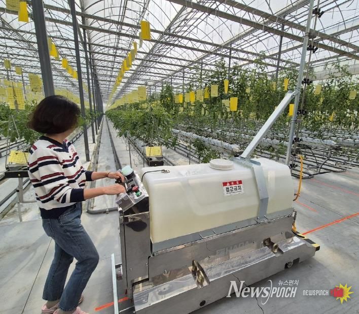 뉴스펀치 김길룡 기자 | 평택시는 농업 현장에서 반복적이고 인체에 유해할 수 있는 방제 작업의 위험을 줄이기 위해 ‘중소형 스마트팜 방제 로봇 시범사업’을 고덕면 시설토마토 농가(규모 0.4㏊)를 대상으로 추진했다.