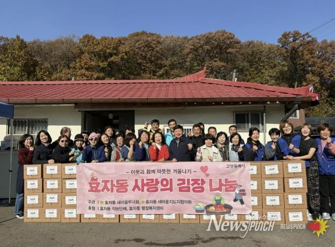 뉴스펀치 김길룡 기자 | 고양특례시 덕양구 효자동 새마을부녀회는 지난 11일과 12일 이틀간, 저소득 취약계층의 따뜻한 월동 준비를 돕기 위한 ‘사랑의 김장김치 나눔’ 행사를 진행했다.
