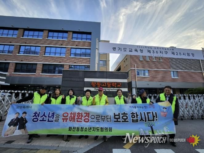뉴스펀치 김길룡 기자 | 고양특례시 덕양구 화전동 청소년지도협의회는 지난 13일, 2026학년도 대학수학능력시험이 실시된 향동고등학교 앞에서 수험생 응원과 함께 청소년 유해환경 정화 캠페인을 전개했다.