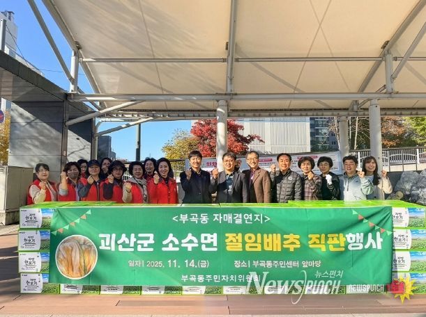 뉴스펀치 김길룡 기자 | 의왕시 부곡동주민자치위원회가 11월 14일 부곡동주민센터에서 자매결연지 괴산 소수면의 대표 농산물 중 하나인 괴산절임배추 직거래 행사를 개최했다.