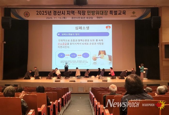 뉴스펀치 김길룡 기자 | 경산시는 11월 13일 경산시민회관 대강당에서 경산시 지역·직장 민방위대장 350여 명을 대상으로 민방위대장 특별교육을 실시했다.