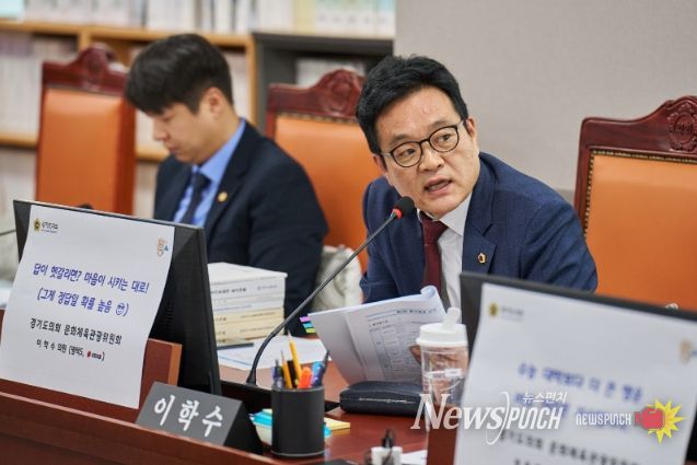 뉴스펀치 김길룡 기자 | 경기도의회 문화체육관광위원회 이학수 의원(국민의힘, 평택5)은 11월 14일 열린 경기관광공사·한국도자재단 대상 행정사무감사에서 내년부터 추진될 예정인 경기관광축제 예산의 시군 균등배분 방안이 축제 경쟁력을 약화시킨다며 강한 우려를 표명했다.