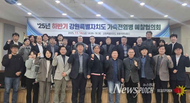 뉴스펀치 김길룡 기자 | 강원특별자치도 동물위생시험소는 11월 14일 ‘2025년 하반기 강원특별자치도 가축전염병 예찰협의회’를 개최했다고 밝혔다.