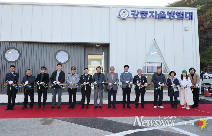뉴스펀치 김길룡 기자 | 강릉시는 지난 15일 오후 3시 강동면 정동진리 259-3번지에 새롭게 신축한 ‘강동 자율방범대 초소’ 준공식을 김홍규 강릉시장, 박호균 도의원, 김기영 시의원, 강릉시 20개 자율방범대 대장, 강동자율방범대원, 면민 등 50여 명이 참석한 가운데 진행했다.