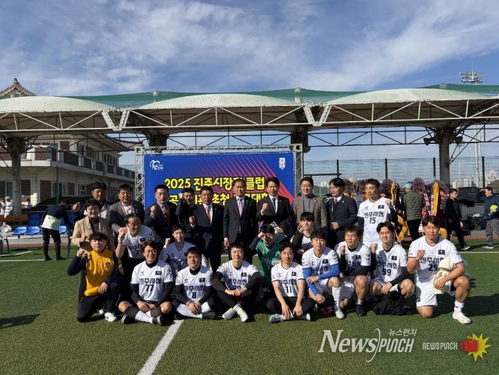 뉴스펀치 김길룡 기자 | ‘2025 진주시장기 클럽 및 공공기관 초청 축구대회’가 16일 진주스포츠파크 축구장에서 선수와 관계자 300여 명이 참가한 가운데 열렸다.