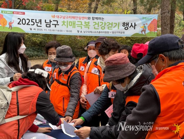 뉴스펀치 조평훈 기자 | 대구 남구치매안심센터는 지난 12일, 지역 어르신 60명이 참여한 가운데 남구국제스포츠클라이밍장에서 앞산기억공원까지 이어지는 산책로를 따라 ‘한마음 치매극복 건강걷기 행사’를 개최했다고 밝혔다.