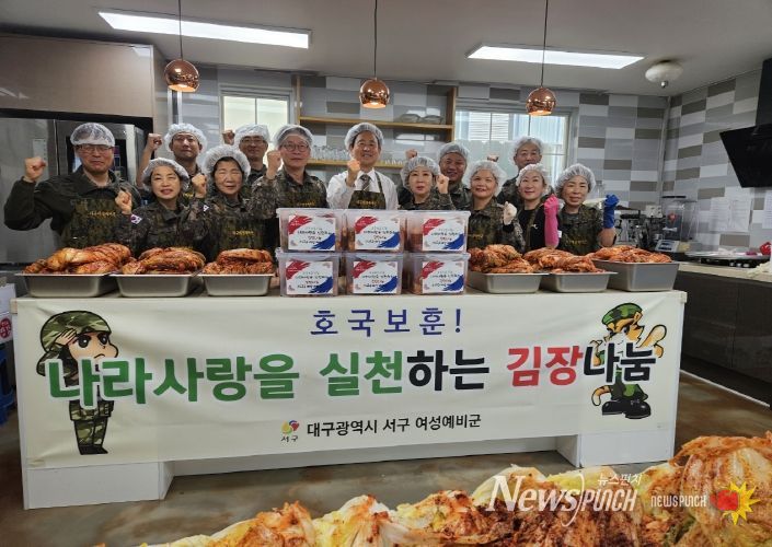 뉴스펀치 조평훈 기자 | 대구 서구대대 여성 예비군은 지난 12일 관내 참전용사들을 위해 김장 나눔 행사를 실시했다.