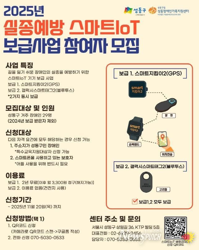 뉴스펀치 김완규 기자 | 서울 성동구는 장애인의 실종 예방과 지역사회 적응 지원을 위해 실시간 위치를 확인할 수 있는 ‘스마트IoT 기기’를 추가 보급한다.