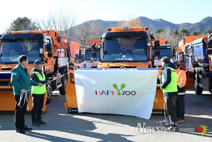 이날 발대식에는 심재국 평창군수 및 제설 운영 담당자 등 68여 명이 참석하여, 겨울철 제설 작업이 원활히 이루어질 수 있도록 결의를 다짐하고, 제설 차량을 점검하는 등 본격적인 제설 시작에 앞서 협력체계를 다졌다.