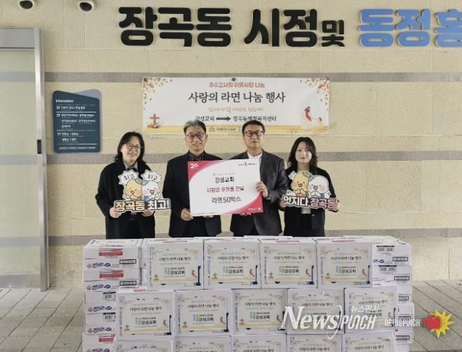 뉴스펀치 김길룡 기자 | 시흥시 장곡동 행정복지센터에 지난 11월 17일 강성교회가 방문해 취약계층을 위한 라면 50상자를 전달했다.