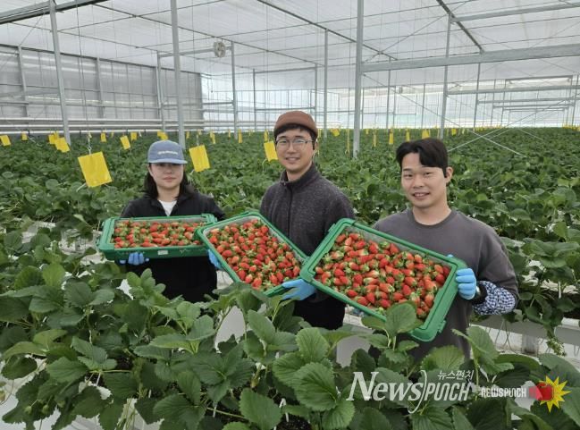 뉴스펀치 김길룡 기자 | 남상주농업협동조합은 11월 17일 남상주농협경제사업장에서 2025년산 상주 딸기 약 80kg을 말레이시아로 수출했다.