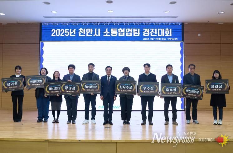 뉴스펀치 김길룡 기자 | 천안시는 지난 17일 시청 대회의실에서 ‘2025 소통협업팀 경진대회’를 개최했다.