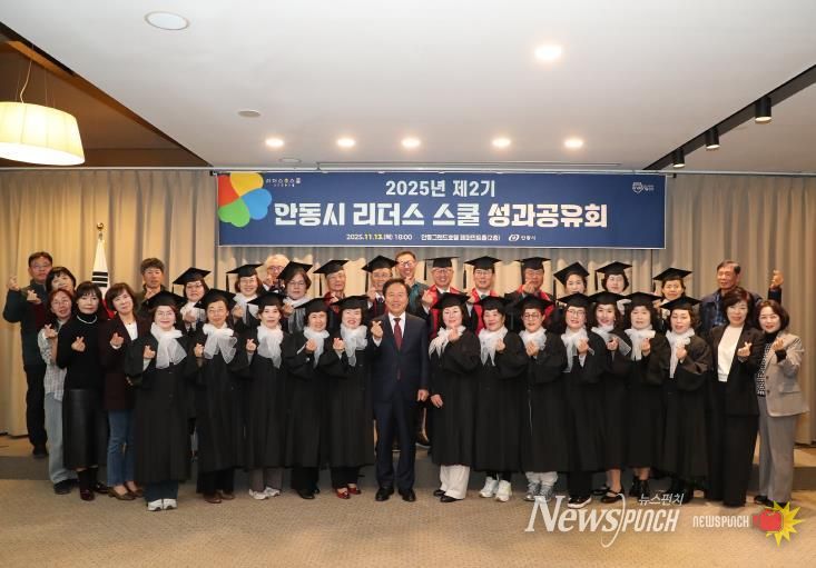 뉴스펀치 김길룡 기자 | 안동시는 지난 11월 13일 안동그랜드호텔에서 ‘2025년 안동시 리더스스쿨 제2기 성과공유회’를 개최했다. 이날 수료식에는 제2기 교육생 32명과 제1기 수료생 15명이 함께해 배움의 결실을 나누는 뜻깊은 시간을 가졌다.