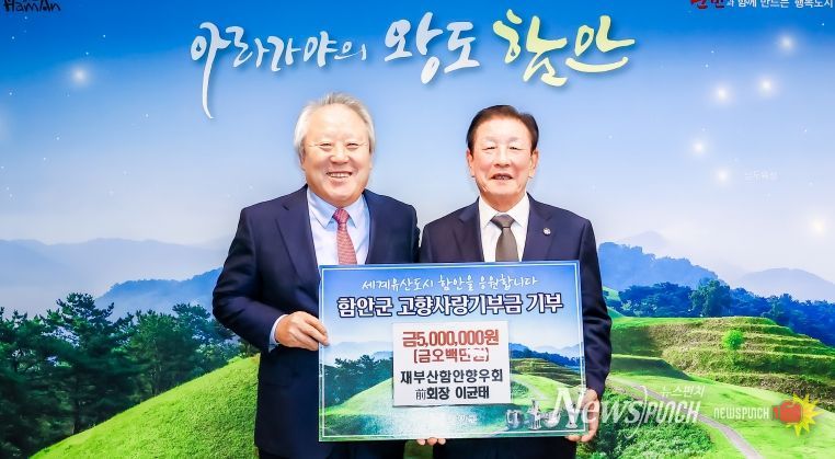 이 전 회장은 “고향 함안은 제 삶의 뿌리이자 늘 마음으로 돌아가는 곳”이라며 “작은 정성일지라도 지역의 발전과 군민들의 복지 향상에 보탬이 되길 바란다”고 따뜻한 소감을 전했다.