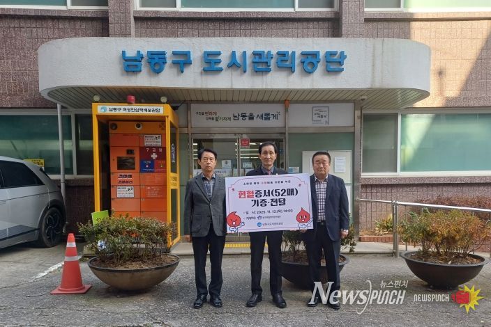 뉴스펀치 김길룡 기자 | 인천시 남동구 도시관리공단은 소아암 환아의 수혈 비용 부담을 덜기 위해 임직원이 자발적으로 모은 헌혈증 52매를 한국백혈병어린이재단에 기증했다고 18일 밝혔다.