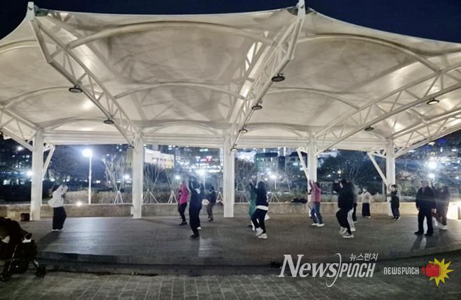 뉴스펀치 김길룡 기자 | 수원시 권선구는 지난 17일부터, 구민건강 증진 및 생활체육 활성화를 위해 호매실동 두레뜰 공원 야외무대에서 건강생활체조 교실을 추가 신설하여 개강했다.