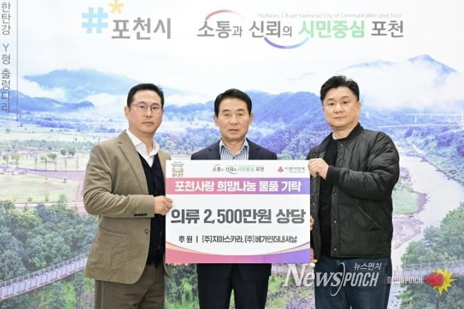 이번 기부에는 △주식회사 지아스카라(대표이사 이성환·김승환)와 △베가인터내셔날(대표 정경미)이 2,500만 원 상당의 의류를 기탁했으며, △시애틀 영웅시대(총무 김숙희)는 성금 400만 원을, △비엠(BM)포천(대표 김민철)은 비타민을 기부하며 나눔에 동참했다.