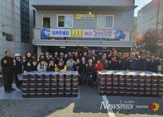 뉴스펀치 김길룡 기자 | 소흘읍 남녀자율방범대·영삼자율방범대는 지난 14일부터 16일까지 사흘간 소흘읍자율방범대 앞마당에서 ‘2025년 사랑의 김장 나누기’ 행사를 개최했다.