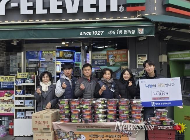 뉴스펀치 김길룡 기자 | 수원시 장안구 영화동에 위치한 편의점 세븐일레븐 수원영화점에서 지난 17일 영화동 행정복지센터에 도시락 50개를 기부했다.