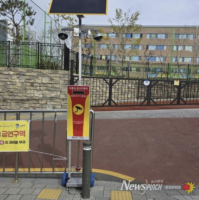 뉴스펀치 김길룡 기자 | 수원시 팔달구 매교동은 지난 17일, 매교초등학교 통학로 부근 관내 상습 무단투기지역에 이동형 CCTV를 설치했다.