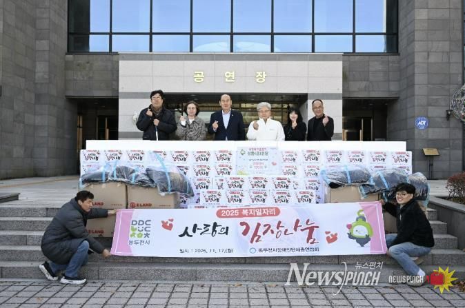 뉴스펀치 김길룡 기자 | 동두천시장애인단체총연합회는 11월 17일 장애인 복지일자리 참여자를 대상으로 ‘사랑의 김장 나눔’ 행사를 진행했다. 이날 행사에는 장애인 단체 임원 등 10여 명의 관계자가 참석해 나눔의 의미를 되새기며 참여자들을 응원했다.