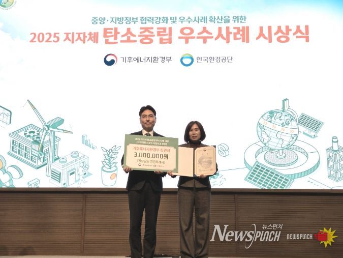 뉴스펀치 김길룡 기자 | 창원특례시는 지난 17일에서 18일까지 전남 여수에서 열린 ‘2025년 지자체 탄소중립 컨퍼런스’에서 기초지자체 탄소중립 이행성과 부문에서 최고점수를 받아 기후에너지환경부 장관상을 수상했다고 밝혔다.
