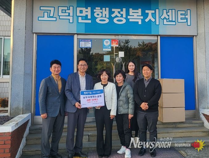 뉴스펀치 김길룡 기자 | 평택시 고덕면은 지난 14일 행정복지센터에 남부사랑하는교회가 관내 취약계층을 위한 라면 50박스를 후원했다고 밝혔다.