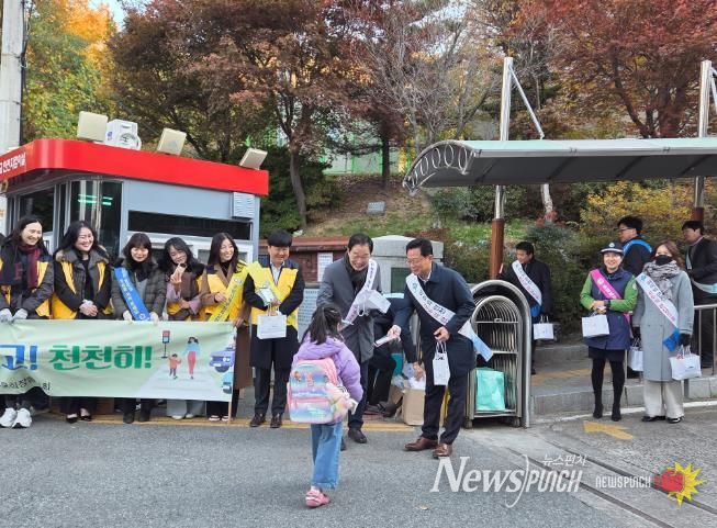 뉴스펀치 김길룡 기자 | 포항교육지원청은 11월 18일 이동초등학교 정문과 주변 통학로에서 '어린이 약취·유인 예방 캠페인'을 실시했다.
