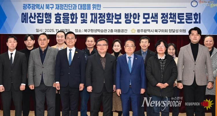 뉴스펀치 김길룡 기자 | 광주 북구의회 정달성 의원(용봉·매곡·삼각·일곡동/더불어민주당)이 18일 북구평생학습관에서 ‘광주광역시 북구 재정진단과 대응을 위한 예산집행 효율화 및 재정확보 방안 모색 정책토론회’를 개최했다.