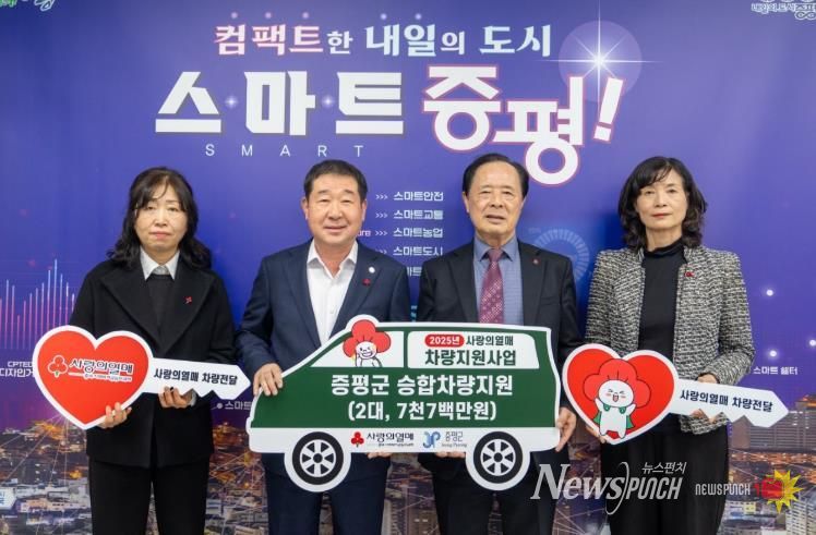 뉴스펀치 김길룡 기자 | 충북 증평군은 충북사회복지공동모금회가 18일 군청을 방문해 지역 사회복지시설에 승합차량 구입비 7700만원을 전달했다고 밝혔다.