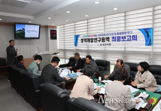 뉴스펀치 김길룡 기자 | 보성군의회는 17일 의원협의실에서‘지역주민이 참여하는 신재생에너지 도입 및 활용방안 정책개발연구용역 최종보고회’를 개최했다.