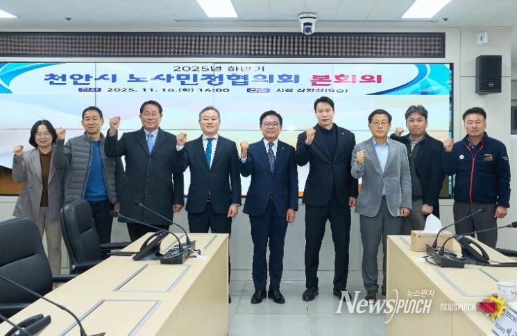 뉴스펀치 김길룡 기자 | 천안시 노사민정협의회는 18일 시청 재난안전상황실에서 ‘2025년 하반기 노사민정협의회 본회의’를 개최했다.