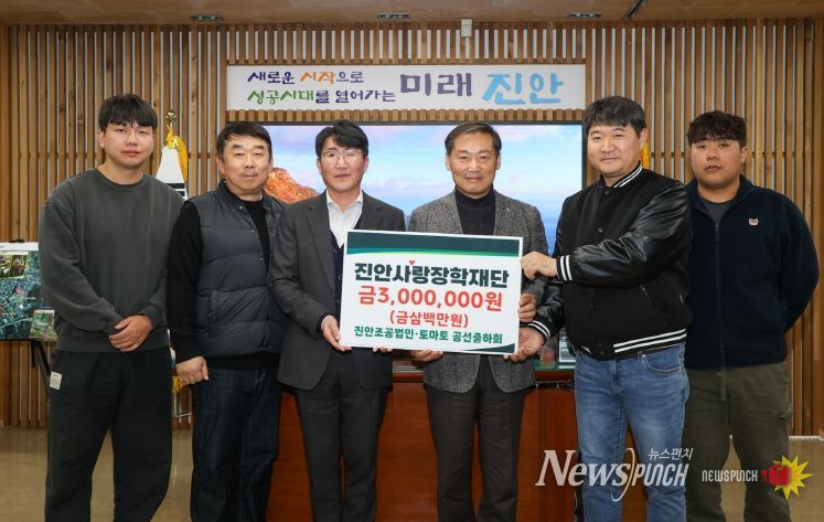 뉴스펀치 정홍균 기자 | 진안농협조합공동법인(진안조공)과 토마토공선출하회는 함께 18일 진안사랑장학재단(이사장 전춘성)에 장학금 3백만원을 기부했다.