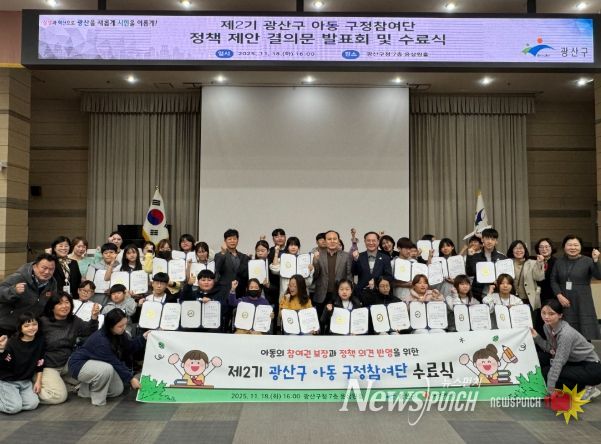 뉴스펀치 김길룡 기자 | 광주 광산구가 18일 구청 7층 윤상원홀에서 ‘제2기 아동 구정참여단 정책제안 발표회’를 개최했다.