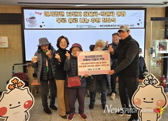 뉴스펀치 김길룡 기자 | 하남시미사강변종합사회복지관은 11월 17일 오전 10시부터 오후 5시까지, 미사강변 13단지 화물차·학원차 연합의 후원으로 복지관 내 ‘나눔카페’에서 지역 어르신들에게 커피, 전통차, 허브티 등 따뜻한 음료 400잔을 무료로 제공했다.