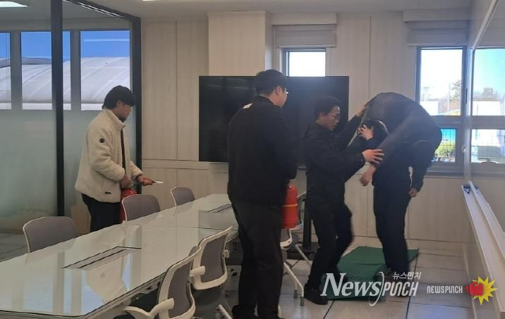 뉴스펀치 김길룡 기자 | 상주시 상수도사업소에서는 11월 18일 오후 2시, 상수도사업소 관리본관에서 상주소방서와 합동소방훈련을 실시했다고 밝혔다. 훈련은 상수도사업소 및 하수도사업소 직원들이 참여하여 실질적인 대피훈련을 통해 재난 대응능력을 높이고자 마련됐다.