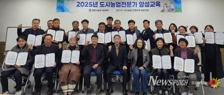 뉴스펀치 김길룡 기자 | 영천시는 지난 18일 농기계임대사업소 서부본소 교육생 22명이 참석한 가운데 ‘2025년 도시농업관리사 자격취득과정 수료식’을 가졌다.