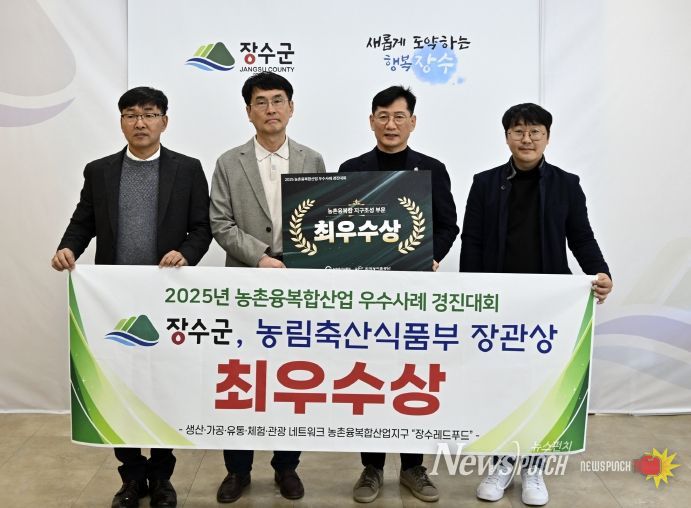 뉴스펀치 정홍균 기자 | 장수군은 18일 농림축산식품부가 주관한 ‘2025년 농촌융복합산업 우수사례 경진대회’에서 ‘농촌융복합산업지구’ 분야 ‘최우수상’을 수상했다고 밝혔다.