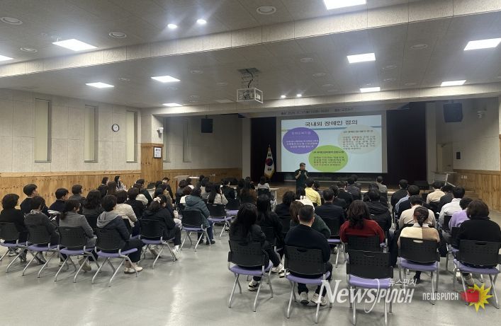 뉴스펀치 정홍균 기자 | 장수군은 지난 17일 장수군청 1층 군민회관에서 전 직원을 대상으로 ‘2025년 사회적 장애인식개선 및 직장 내 장애인 인식개선 교육’을 실시했다고 밝혔다.