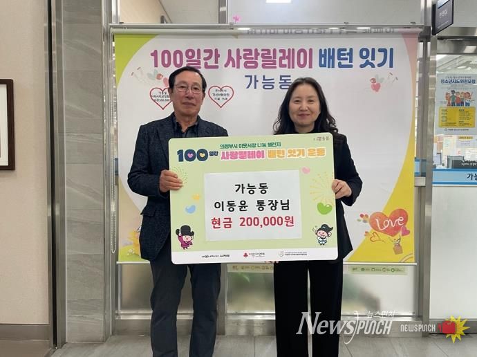 뉴스펀치 김길룡 기자 | 의정부시 가능동주민센터는 11월 18일 이동윤 통장이 관내 취약계층을 위해 성금 20만 원을 기탁했다고 밝혔다.